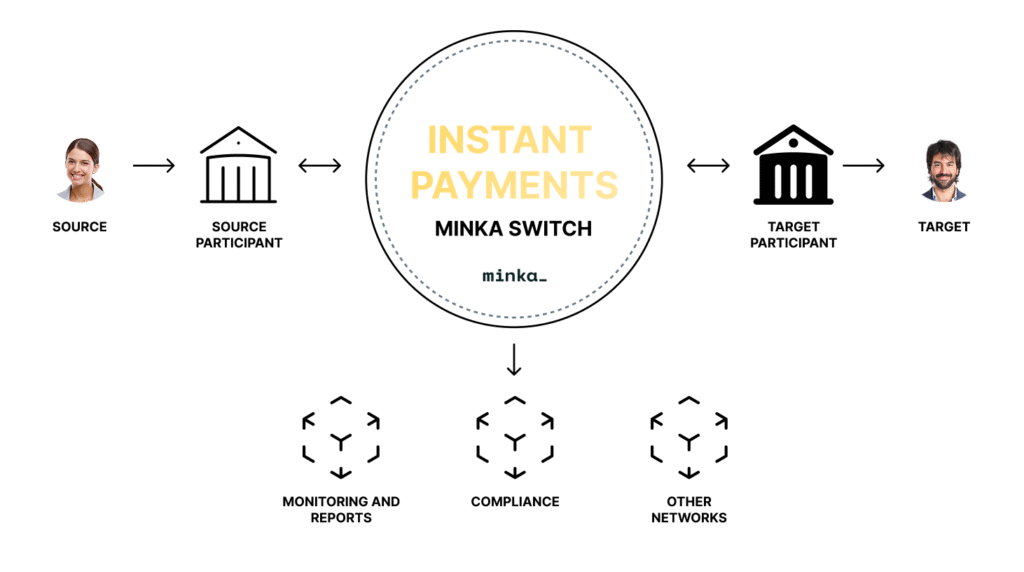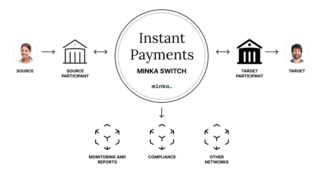 The Minka Switch is a fast payments network enabling account to account transfers between financial institutions. Our cloud offering mitigates fraud and establishes payment certainty through immutability. Push Payments, Request for Pay, Bulk Payments and Alias Directory allow the network to deploy new uses cases in an economy.